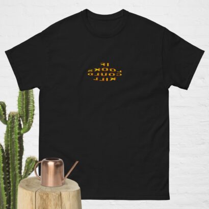 The 100% cotton unisex classic tee will help you land a more structured look. It sits nicely, maintains sharp lines around the edges, and goes perfectly with layered streetwear outfits. Plus, it’s extra trendy now!